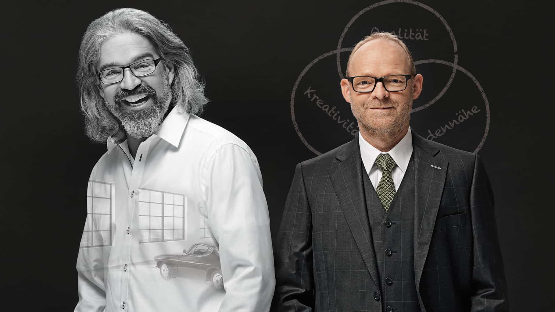 Als Grundlage für die 8-seitige Imagebroschüre diente zu Beginn ein Fragebogen, den die beiden Inhaber unabhängig voneinander beantworteten. Gemeinsamkeiten und Unterschiede in den Antworten dienten als Basis für die Ausformulierung einer zentralen Botschaft sowie für die individuellen Portraits. Der doppelte Firmenname fordert zudem die Gründer auf, persönliche Verantwortung und Führung zu übernehmen: eine idealer Steilpass für gemeinsame und markante Portraitfotos. Hier zeigt sich einmal mehr, dass ein Fotoshooting mit präzisem Briefing ungeahnte Perspektiven öffnen kann.