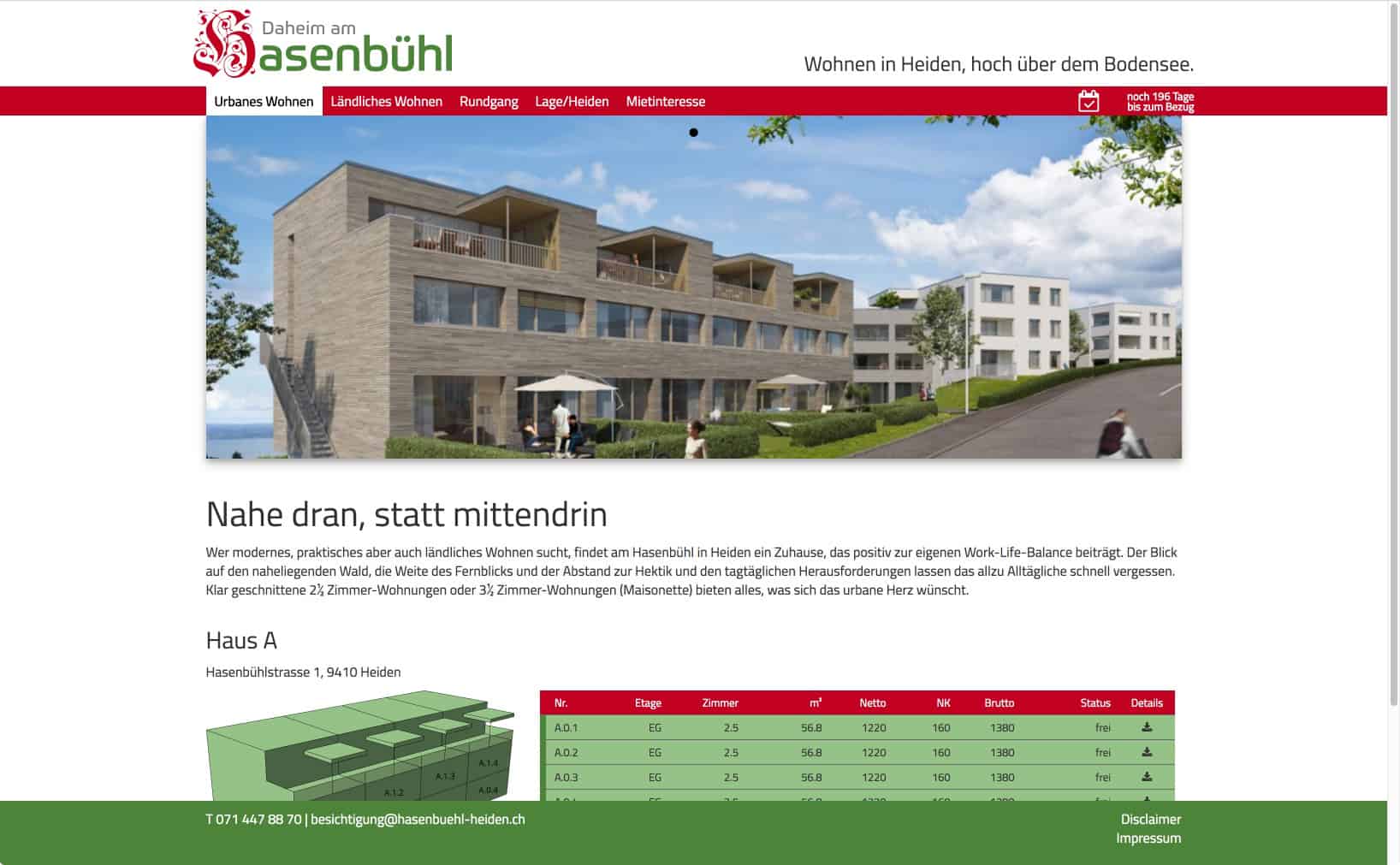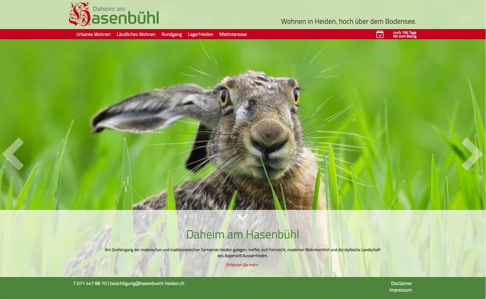 Einfache Benutzerführung in Verbindung mit klaren Botschaften ergeben ein kurzweiliges und informatives Erlebnis, welche die Interessenten möglichst direkt dazu führt, ihr Interesse mittels eines Kontaktformulars zu bekunden. www.hasenbuehl-heiden.ch